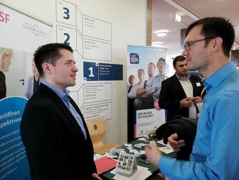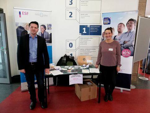 Von allen Seiten wurde der Kontakt mit dem Team der Regionalberatungsstelle Halle bei der Firmenkontaktmesse der Hochschule Merseburg gesucht. Zukünftige Absolvent*innen der Studienbereiche Informatik und Mechatronik fragten nach Unterstützung bei der Jobsuche in der Region und die Agentur für Arbeit Merseburg suchte den Erfahrungsaustausch. "Die Firmenkontaktmesse der Hochschule Merseburg ist ein fester Termin für uns. Es gab von Unternehmen als auch Fachkräften viele Anfragen zu WEITERBILDUNG BETRIEB und WEITERBILDUNG DIREKT. Des weiteren bietet uns die Messe die Möglichkeit, uns mit Netzwerkpartnern und Firmen der Region auszutauschen", so Regionalberater Sandro Miritz.
