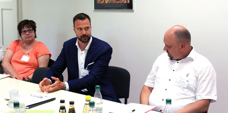 Das Podium füllte sich, als den Gästen der Konferenz das Beispiel der Kubra GmbH und dem iranischen Ingenieur Alireza Khodaei Bejandi präsentiert wurde. Georg Schalow, kaufmännischer Leiter des Unternehmens aus Oranienbaum-Wörlitz, berichtete von der guten Zusammenarbeit mit den Partnern, aber auch den Schwierigkeiten, einen Geflüchteten mit guten Qualifikationen letztendlich einstellen zu dürfen. In Zusammenarbeit gelang es Georg Schalow, FiF - Regionalberater der Region Anhalt-Bitterfeld-Wittenberg, Sandro Miritz, Hagen Prautzsch von den Euro-Schulen Dessau und Christian Schiebe von der Willkommensagentur Anhalt Alirelza Khodaei Bejandi in das Unternehmen zu integrieren. Georg Schalow appellierte, dass die Unternehmer*innen sich die Zeit nehmen müssen, die Flüchtlinge einzuarbeiten. Dabei ist es wichtig, dass beide Parteien in einer Sprache kommunizieren - egal ob Englisch, Arabisch oder bestenfalls Deutsch. „Man muss sich darüber auch im Klaren sein, dass die Führungsebene diesen neuen Mitarbeiter*innen aus anderen Ländern auch nach Feierabend zur Verfügung stehen muss, um offene Fragen rund um den Arbeitsplatz zu beantworten“, ist Schalow überzeugt.