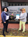 Kirsten Lehmann freut sich, denn der Inhaberin des Pflegedienstes „Pflegedienst Hand in Hand - Pflege mit Herz und Verstand“ wurde das Landessiegel…